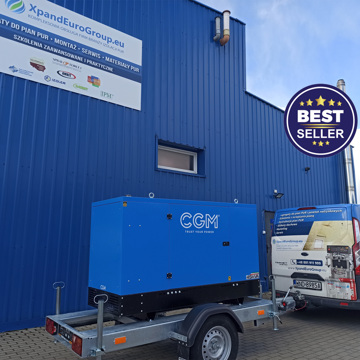 Agregat prądotwórczy CGM 45kVA, 4500cm, wolnossący (bez turbo), 4-cylindrowy, przyczepa